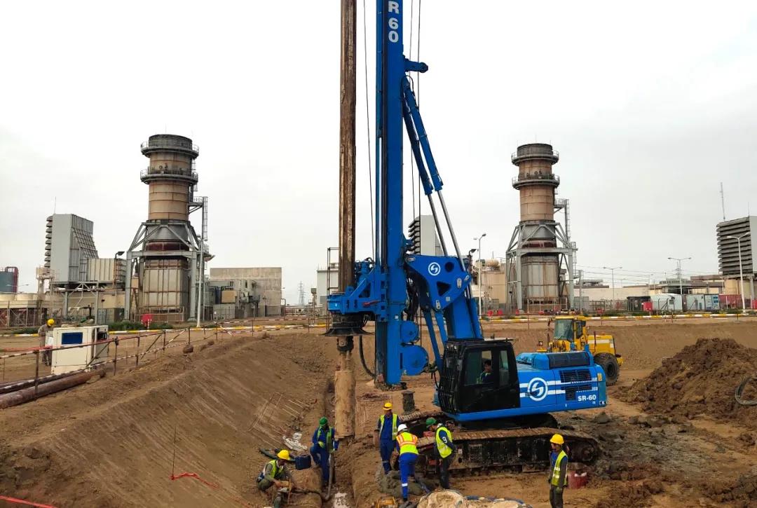 施工現場進行旋挖鉆孔作業。